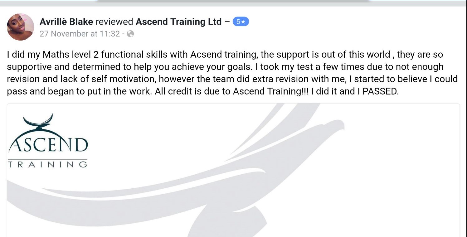 Ascend Training can help you to improve your skills to read and write in English. We also support you to develop your Mathematics and ICT abilities. You can achieve a Level 1 or Level 2 certificate with us.